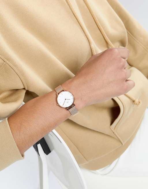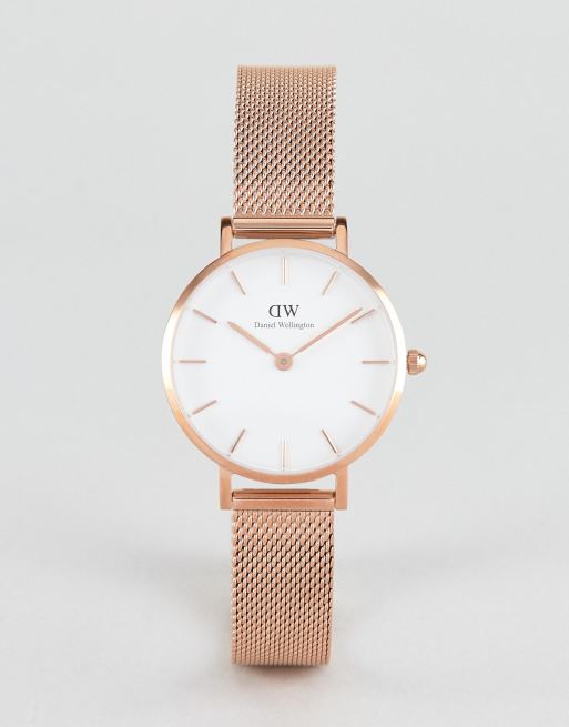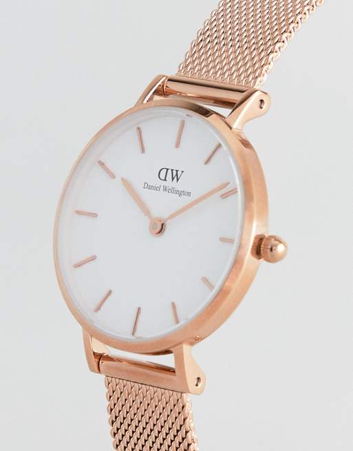 Daniel Wellington Petite Melrose Klocka Med Armband I Roseguldmesh Och Vit Urtavla 28mm Asos