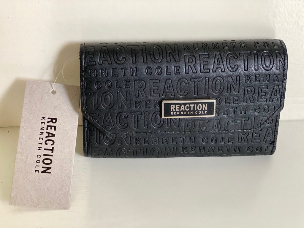 New Kenneth Cole Reaction Black Signature Logo Kelly Leather Trifold Clutch Wallet Sale Men S Fashion Watches Accessories Wallets Card Holders On Carousell